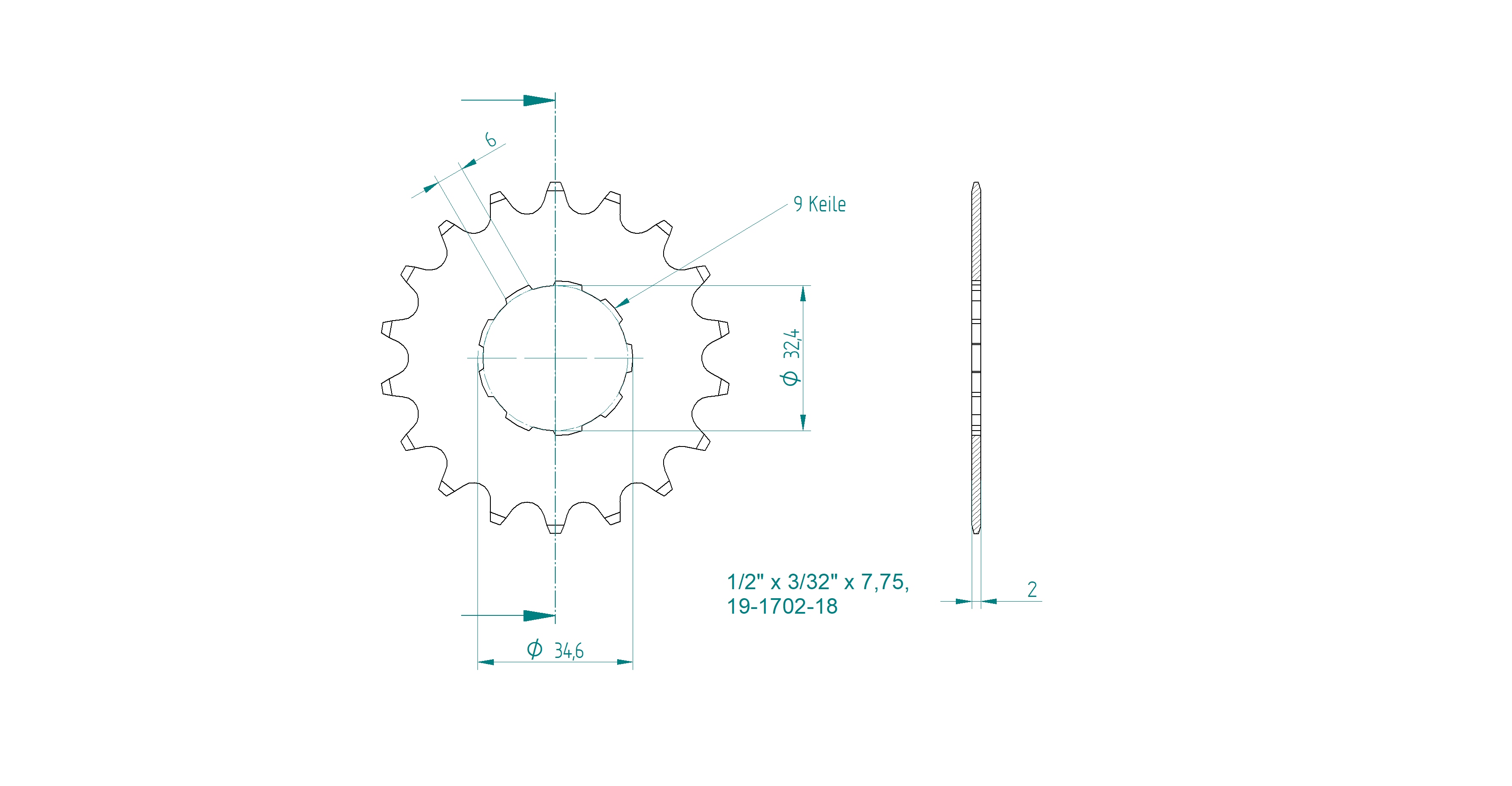 | Teilung: | 1/2"x3/32" |